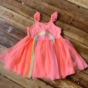 VERY popular dress at our house. Has sequin rainbow on the front and tulle skirt.