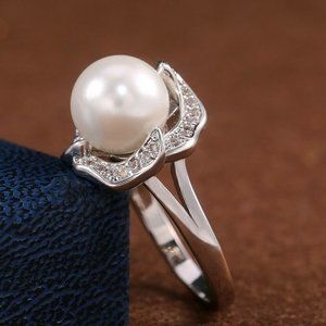 Magnificent 14k Gold Over Silver Cultured Pearl Diamond Ring