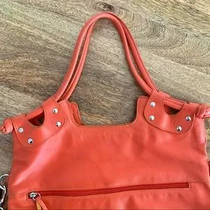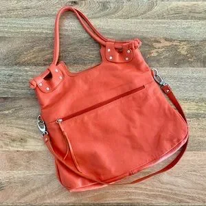 That pop of color you need in your life. The deets: foley + corinna leather convertible hobo tote bag | color: peach (but a true rich orange) | this fun piece allows two ways to style/ wear - either as a tote on your arm or as a crossbody bag | this piece features rich buttery textured leather outer + soft tan interior lining + structured top handle + crossbody strap + outer zip pocket w. tassle + gold hardware| measurements: tba | immaculate/ like-new condition- see images for details | contact for questions | no trades or lowball offers pls