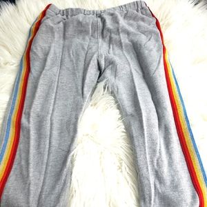 NWOT Spiritual Gangster sweatpants. Rainbow colors embroidery down the sides of the legs; cropped legs with frayed bottoms. Sweatshirt is also in my closet.