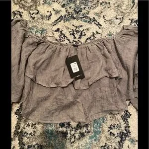 Love! Got this in my size , the XS was too small for me . New with tags Woven ruffled top, it is cropped. See photo for details.