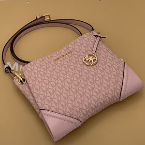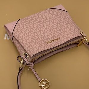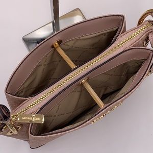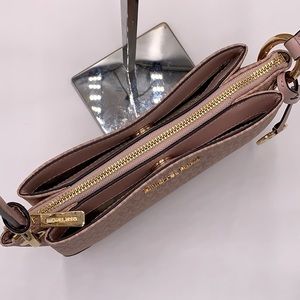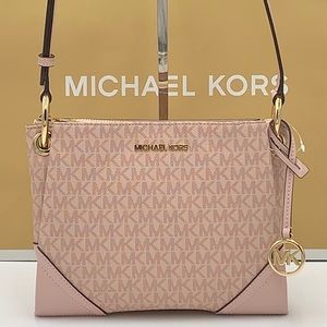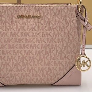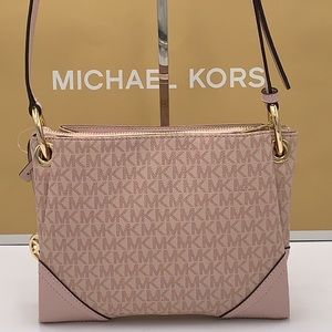 MICHAEL KORS NICOLE LARGE TRIPLE COMPARTMENT CROSSBODY BAG MK SIGNATURE PINK BALLET