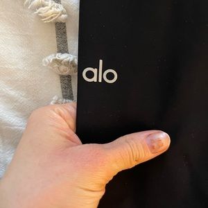 ALO YOGA ripped warrior leggings in black color. Either a size xs or small (I ripped out the size tag) but could honestly fit either well! Great condition! Very slimming