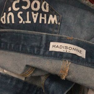 They appear to be never worn, never washed, new without tags (NWT). I purchased these from ThredUP and unfortunately they don’t fit me, and I didn’t return them within the two week window. The tag is brand “Madisonne”, a boutique brand, and the tag size is S but I’d say they fit more like a medium. Please refer to measurements below for fit.