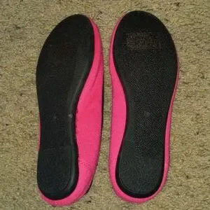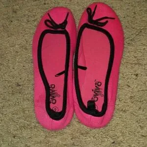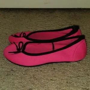Easy slip on shoes with black bows on the top (shown in pictures). Wore only 2 times. In great condition with no scuffs or smudges.
