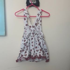 Beautiful vintage ruffle trim overall dress adjustable overalls with cute front pocket.