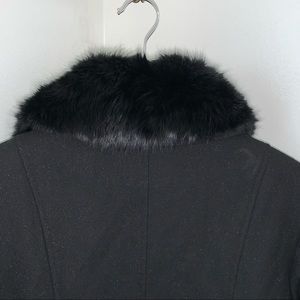 Georgiou Studio Peplum Coat. Sparkly Black. Beautiful mid weight coat, removable faux fur collar, waist slip pockets, peplum cut, front button closure, fully lined, wool/viscose blend, dry clean only. Gently used, very good condition, see pictures for details.