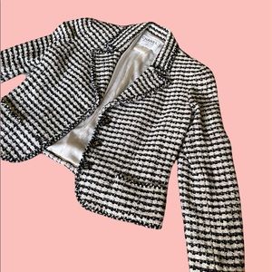 Chanel Spring 1997 Classic Black and White Tweed Blazer Authentic Size Medium