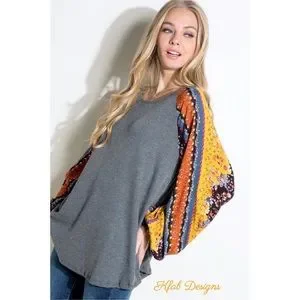 ❤️LAST 1! Boho Floral Mix Puff Sleeve Ribbed Knit Super Soft Top!