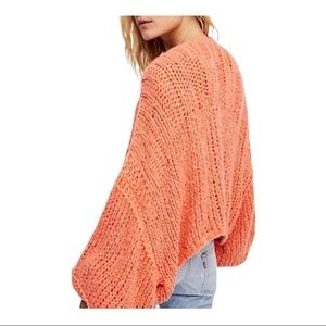 Free People Orange Chamomile Wool Blend Open Front Chunky Cardigan Sweater SZ XS