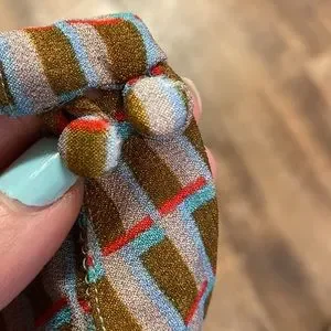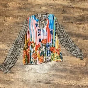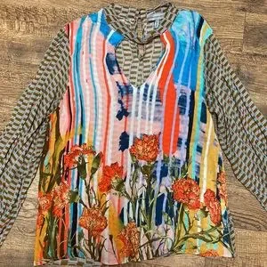 Excellent, preowned condition - size medium - Approx. 18” pit to pit & 22” from top of shoulder to bottom hem - keyhole detailing with two buttons on back