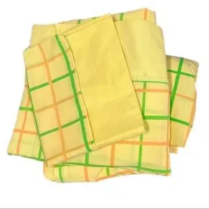 VTG 1970s JP Stevens Percale Bright Retro Yellow Full Bed Linens Sheet Set of 3