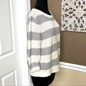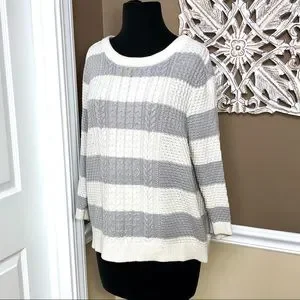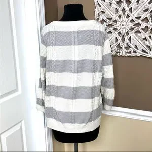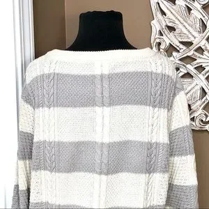 ⭐️ Lands End Gray and White Striped Cable Knit Sweater Size LARGE
