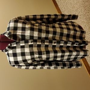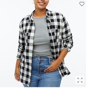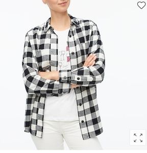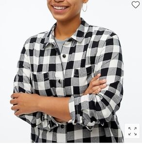 đź–¤J Crew Factoryđź–¤ Black and ivory, flannel shirt jacket, size XL, side pockets. It is more of a flannel shirt than a jacket. I just included the description name from the website for accuracy.