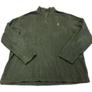 Polo Ralph Lauren Pullover Sweater Long Sleeve 1/4 Zip Size L Green 100% Cotton