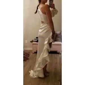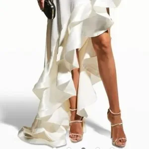 SOLD Monica One-Sleeve Asymmetric Ruffle Gown