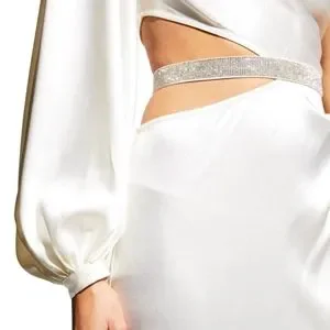 Bronx and Banco "Monica" asymmetric satin gown with one sleeve
