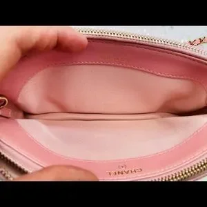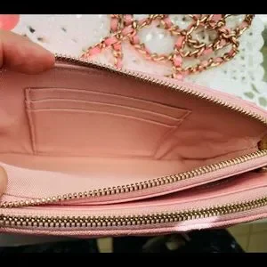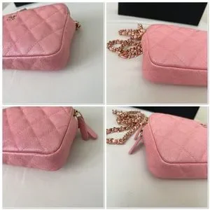 π¦ Gorgeous pink iridescent caviar clutch with chain