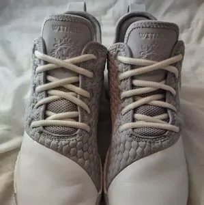 These shoes are in good condition other than a few minor creases and scuffs. What you see up top is exactly what you're getting. They've only been played in a few times.