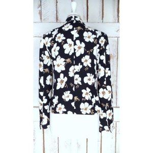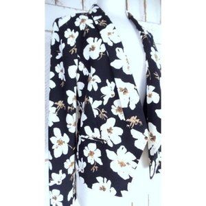 Vintage 90s black cream ivory white floral blazer jacket Ann Taylor Loft flower jacket