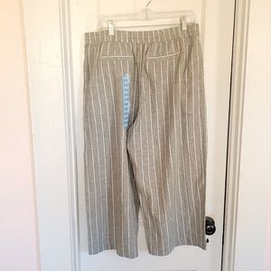 BeachLunchLounge Margo Green Striped Linen/Cotton Blend Cropped Wide Leg Pants L