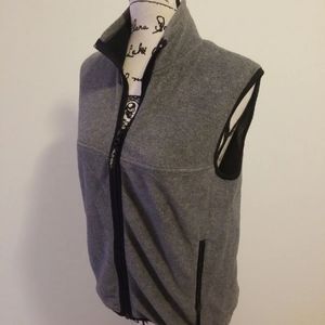 Gray, light fleece vest. Black zipper front and zipper pockets on both sides. Size large but runs small.