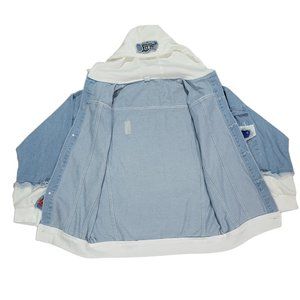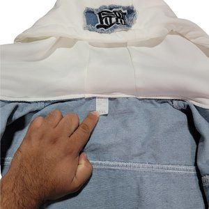 FEATURE: Button closure. Turn down collar. Adjustable hood drawcords. 2 decorative chest pockets, 1 small sleeve pocket and 2 applique patches.