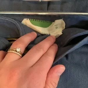 Anthropologie belted, wide leg pants. Color is similar to steel blue. No flaws to my knowledge! 12in waist & 28in inseam.