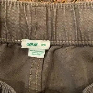 Aerie distressed drawstring boyfriend chambray pants in olive stone wash