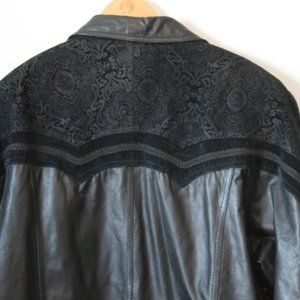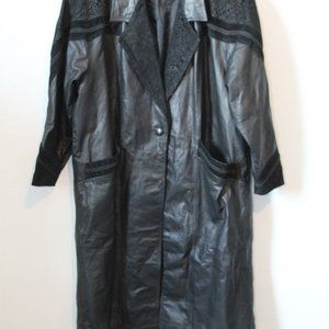 Vintage Venezia Lane Bryant Long Leather Embroidered Coat Black Plus 3X H12284