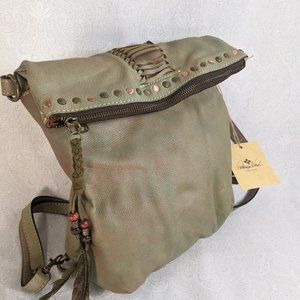 PATRICIA NASH Luzille washed denim leather vintage women's backpack crossbody bag purse + Dust bag