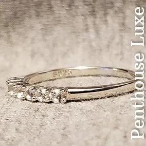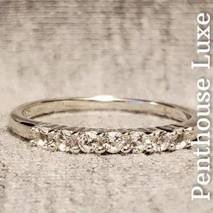 Gorgeous 1.5mm band crafted from solid 925 sterling silver and quarter paved with 7 brilliant cut white topaz stones. Engraved "S925". Very high quality and will not discolor fingers. Guaranteed authentic. All photos are real and property of Penthouse Luxe Jewelry.