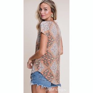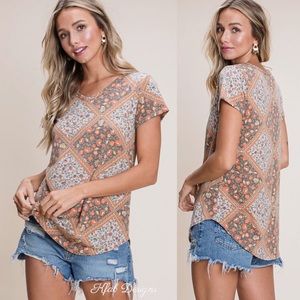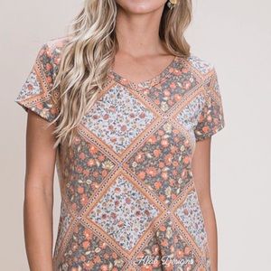 LAST 1! V Neck Super Soft Mosaic Floral Print Top!