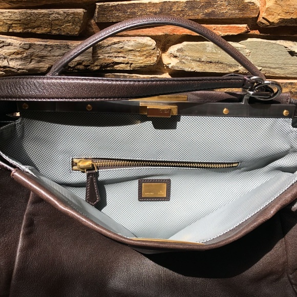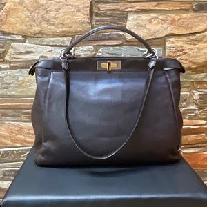 Gorgeous classic chocolate brown Fendi large kid leather Peekaboo tote with gray pebbled leather lining!!