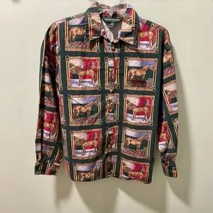 Vintage Ralph Lauren x Bushwacker Equestrian Horse Button Up Long Sleeve Shirt