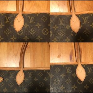 Authentic Louis Vuitton neverfull mm in great Preowned condition. Leather has some wear. Honey patina, dryness, spots. Interior has slight discoloration.