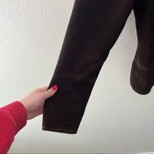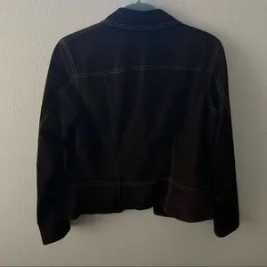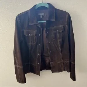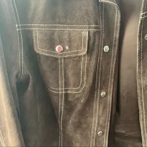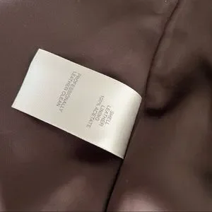 100% leather jacket. It has a few spots that I’m sure could be wiped off, I just didn’t try to. This was my moms and she purchased it at Nordstrom over 20 years ago. Soft brown leather, ivory stitching, acetate lining. Super cute and flattering and totally back in! Excellent used condition
