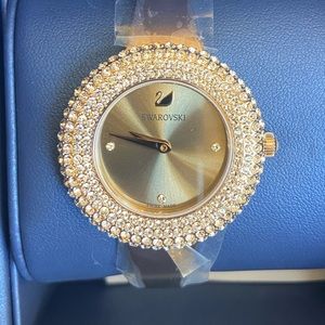 Brand new Swarovski watch, still have clean wrap on,come with original box and tag , extra link for resize included.Crystal-Rose-Watch-Metal-Bracelet-Golden-Champagne-gold-tone. Beautiful watch lots of sparkle.