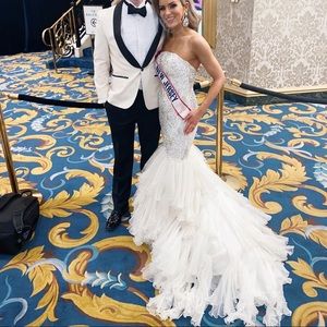 Sherri Hill Culture White Crystal Gown with Organza on the Bottom Size 2
