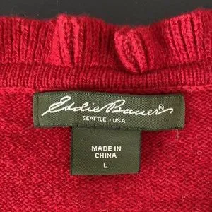 Eddie Bauer Winter Cardigan with Ruffled Neck and Placket—L