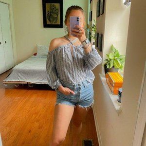 Rebecca Taylor Pin stripe Criss Cross Cut Out Blouse