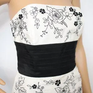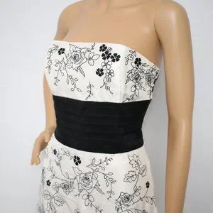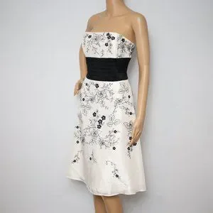 White House Black Market Rosy Embroidery Silk Cocktail Dress Sz 6 White Black