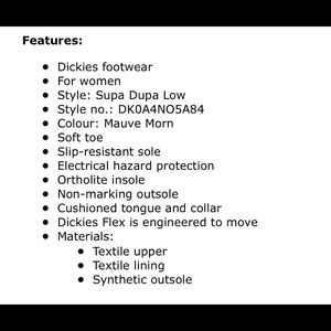 DICKIES - Women’s size 9 Mauve Morn NEW IN BOX