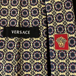 Mens Versace Gold/Navy Silk Tie NWOT