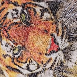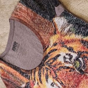 RRR...Romance.Retro.Rock. Super lightweight polyester cotton blend. 28" long, armpit to armpit 18" laying flat. Good stretch, round low neck, vibrant colors. New, no tag.