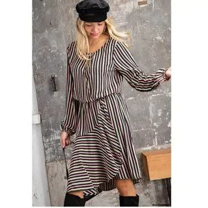 NWT Ethnic Stripe Asymmetrical Long Sleeve Dress