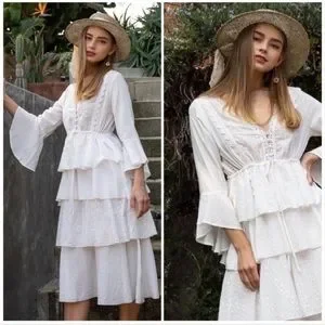 Gorgeous white eyelet tiered boho dress (new in packaging)