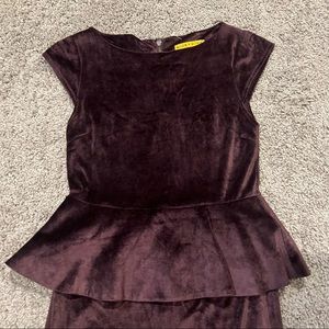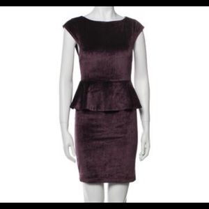 Alice + Olivia Bateau Neckline Mini Dress in a deep purple and velvet material. Used with normal wear and tear