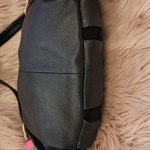EUC Black leather and suede shoulder bag with gold hardware