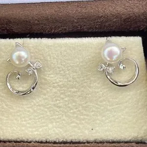 Lovely 925 Sterling Silver Genuine 5 mm - 6 mm Pearl Cat Shape Stud Earrings.